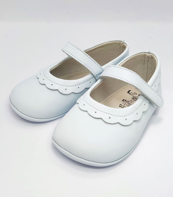 Merceditas sin suela para bebés. Cierre con velcro y detalle de volantito del mismo tono.
