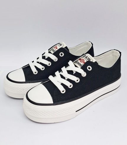 Diseño negro clásico y versátil. Materiales ligeros y transpirables para mayor comodidad. Suela gruesa para un look moderno y más estabilidad. Cierre con cordones para un ajuste seguro.