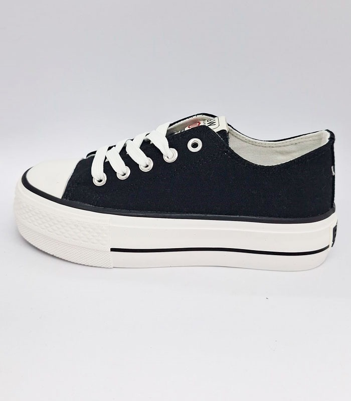 Diseño negro clásico y versátil. Materiales ligeros y transpirables para mayor comodidad. Suela gruesa para un look moderno y más estabilidad. Cierre con cordones para un ajuste seguro.
